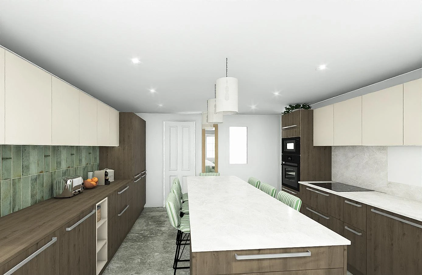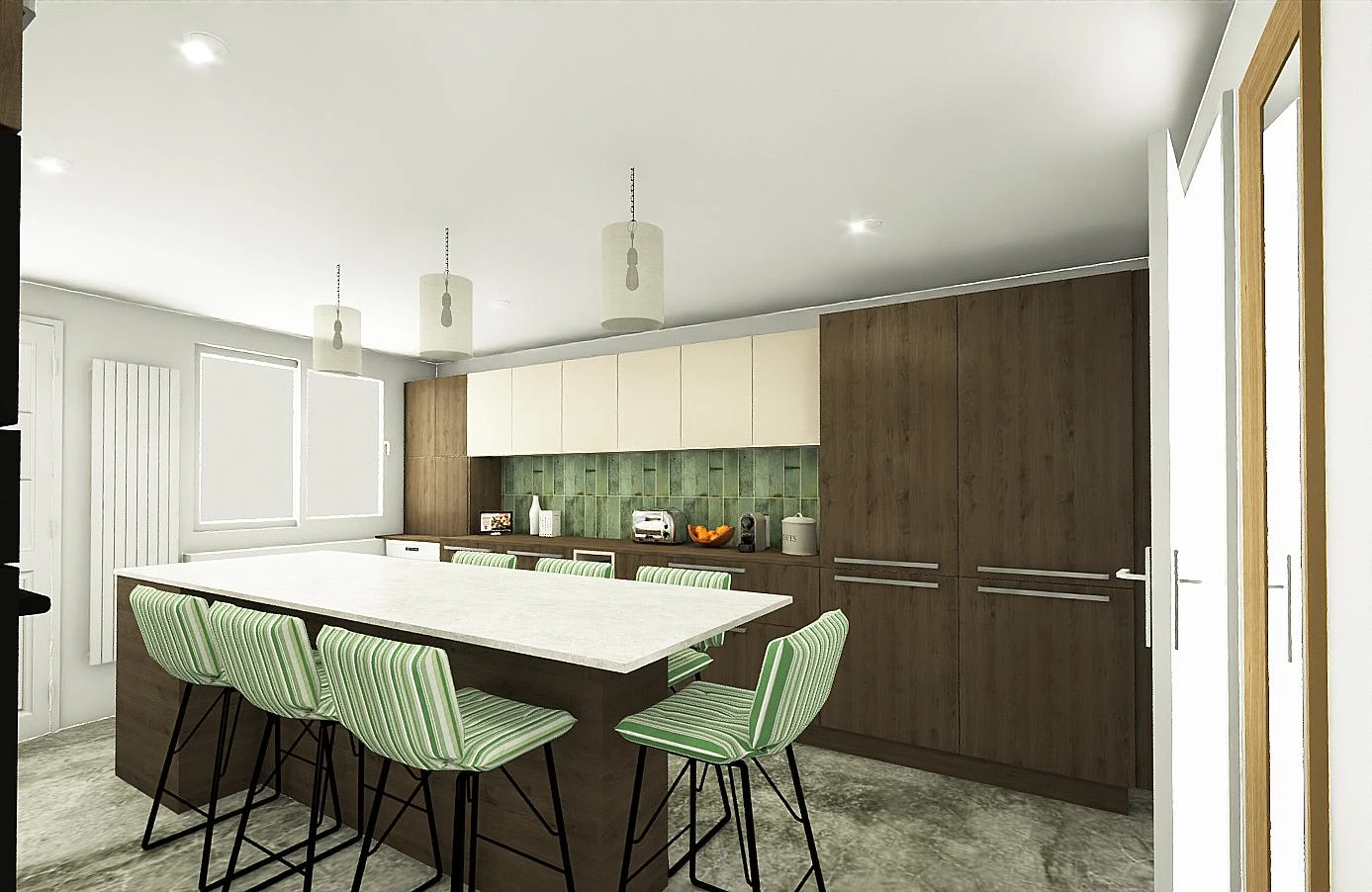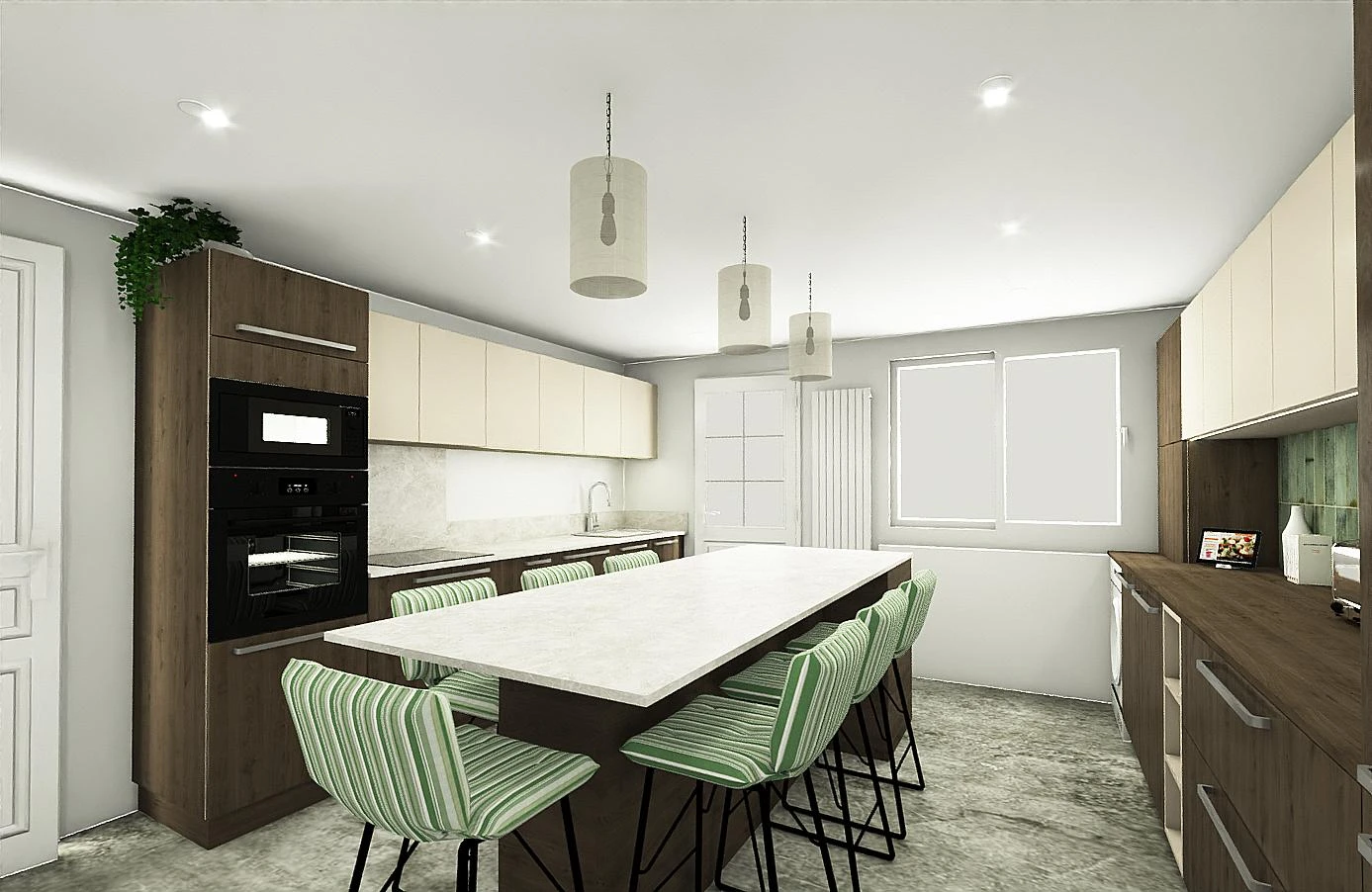 Entre volumes généreux, rangements fonctionnels et circulation fluide, cette cuisine devient un véritable lieu de vie, où design et praticité s'unissent pour répondre pleinement aux attentes de ses utilisateurs.