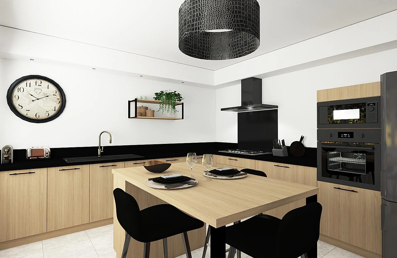 Les façades en chêne de lancelot clair YOU apportent une touche naturelle et lumineuse à l'ensemble. Leur texture chaleureuse souligne le caractère de la cuisine tout en conservant une ambiance douce et accueillante.